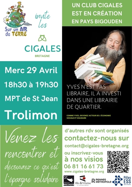L’association Les CIGALES de Bretagne et l’association Sur Un Air de Terre sont heureuses de vous inviter Ă  une rĂ©union d’information Ă  la MPT de Saint-Jean-Trolimon.
